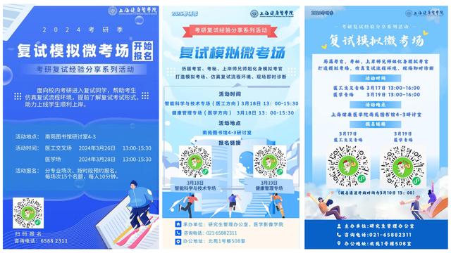 为助力考研学子顺利通过复试,迈入理想学府,我校持续打造“考研复试微考场”特色品牌活动,切实为本科生办实事、解难题。活动由上海健康医学院研究生管理办公室、研究生直属党支部、上海理工大学健康学院联培学生第一党支部联合开展,并得到了校图书馆及各二级学院大力支持,至今已连续开展三年。